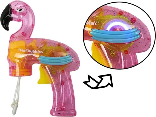 Anima tu diversión con una pistola de burbujas única con forma de flamenco. Combina perfectamente el diseño de una pistola con la atractiva representación del flamenco.