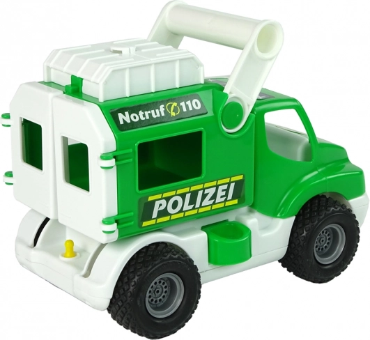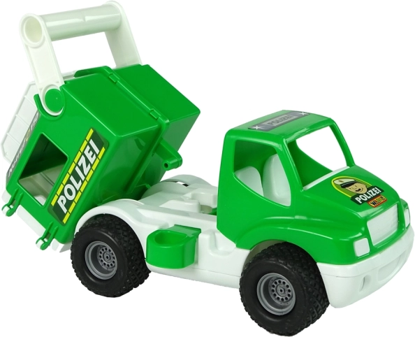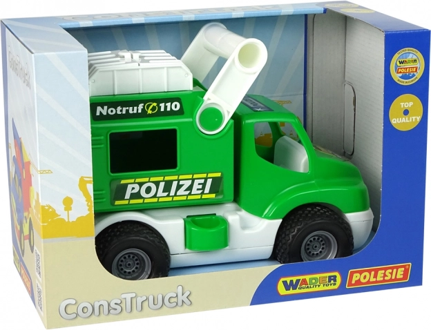 El coche de policía ConsTruck en color verde de la marca Polesie es un juguete resistente para niños a partir de 1 año. Ofrece ruedas de goma con banda de rodadura para mejor adherencia, puertas traseras y compartimento superior abatibles para guardar tesoros y figuritas. El seguro lateral del remolque y la caja volcable garantizan diversión durante horas y fomentan el desarrollo de la motricidad fina y el pensamiento lógico. Fabricado con materiales seguros y certificados, con certificado CE.