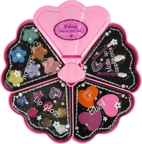 Este set de cosmética con forma de concha es ideal para pequeñas maquilladoras principiantes. Contiene seis sombras de ojos, tres coloretes, ocho brillos de labios, un esmalte de uñas y brochas para la aplicación. Cada nivel oculta opciones de maquillaje únicas que permiten a las niñas crear su propio estilo. Gracias a su tamaño, es fácil tener el set siempre a mano.