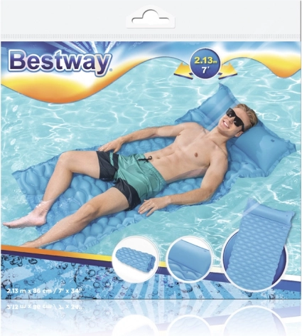 Disfruta el verano al máximo con la cómoda colchoneta inflable BESTWAY. Gracias a su diseño enrollable y compacto, puedes llevarla fácilmente a la playa, al lago o a la piscina de casa. La superficie flexible y la almohada integrada brindan un agradable soporte al cuerpo, mientras que el diseño de dos cámaras aporta estabilidad sobre el agua.