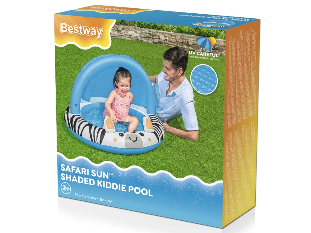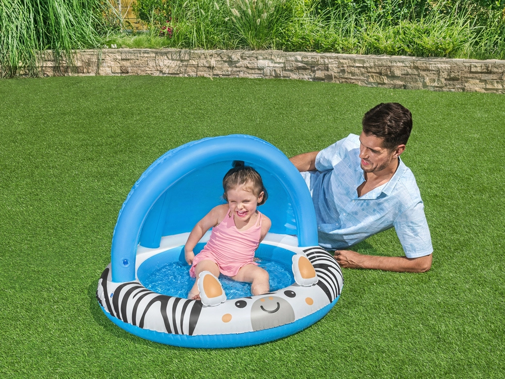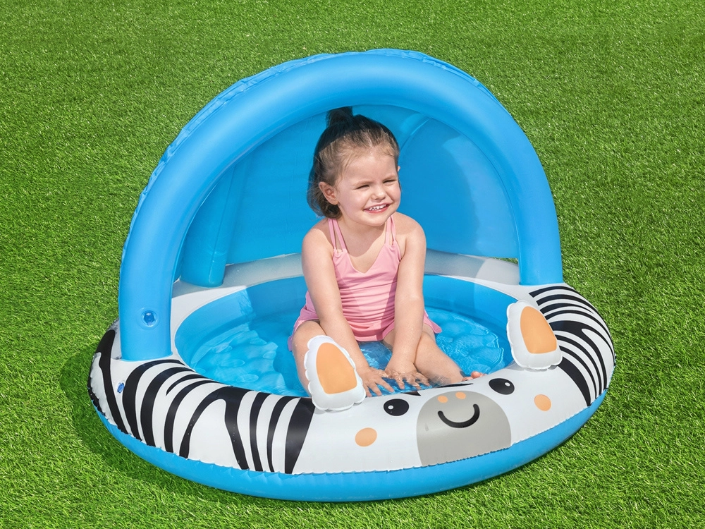 El dosel abovedado proporciona una sombra agradable y una mejor protección frente al sol. Así, los niños disfrutan del agua por más tiempo y con mayor seguridad.