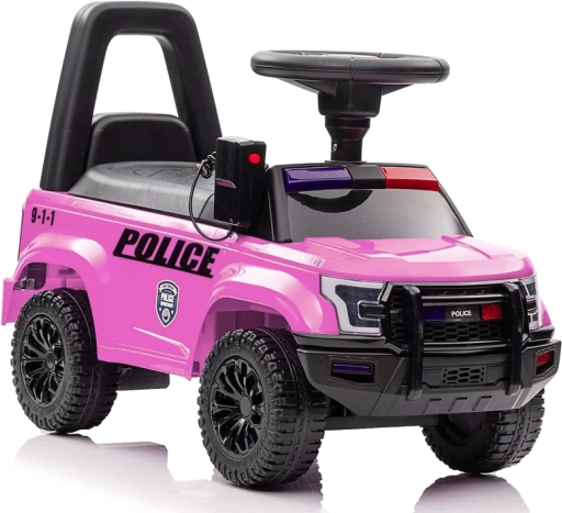 Este juguete está diseñado para parecerse a un auténtico coche de policía, incluyendo detalles como las inscripciones '9-1-1' y 'POLICE'. Los niños se sienten como verdaderos policías en cada paseo.