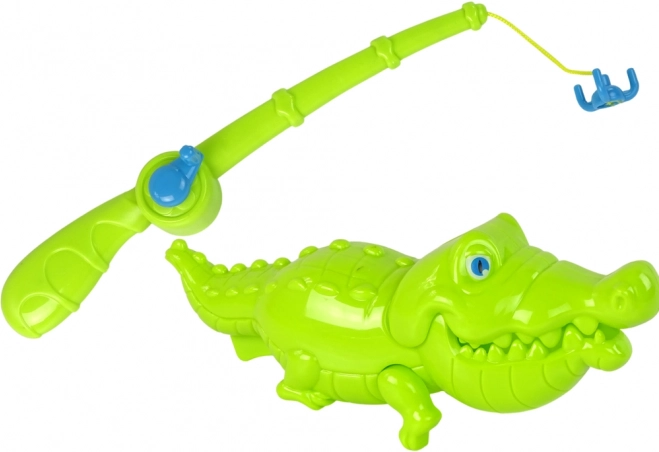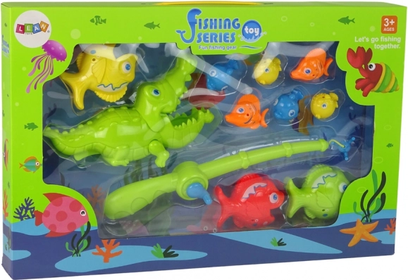 Incluye caña con carrete, 6 peces pequeños, 3 peces grandes y un juguetón cocodrilo.