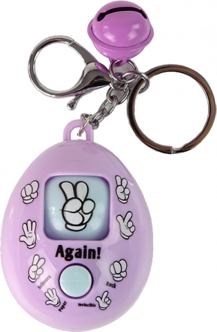¿Buscas un pequeño regalo o un accesorio ingenioso que además entretenga? Este llavero morado con el icónico juego de piedra, papel o tijeras es una excelente opción. Al pulsar el botón central, el indicador del centro gira y elige un gesto al azar, ideal para decisiones rápidas y para divertirse con amigos.