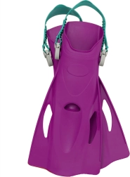 Las aletas ligeras con correa ajustable se adaptan fácilmente y aumentan la eficiencia de la patada para que los niños se muevan en el agua con menos esfuerzo.