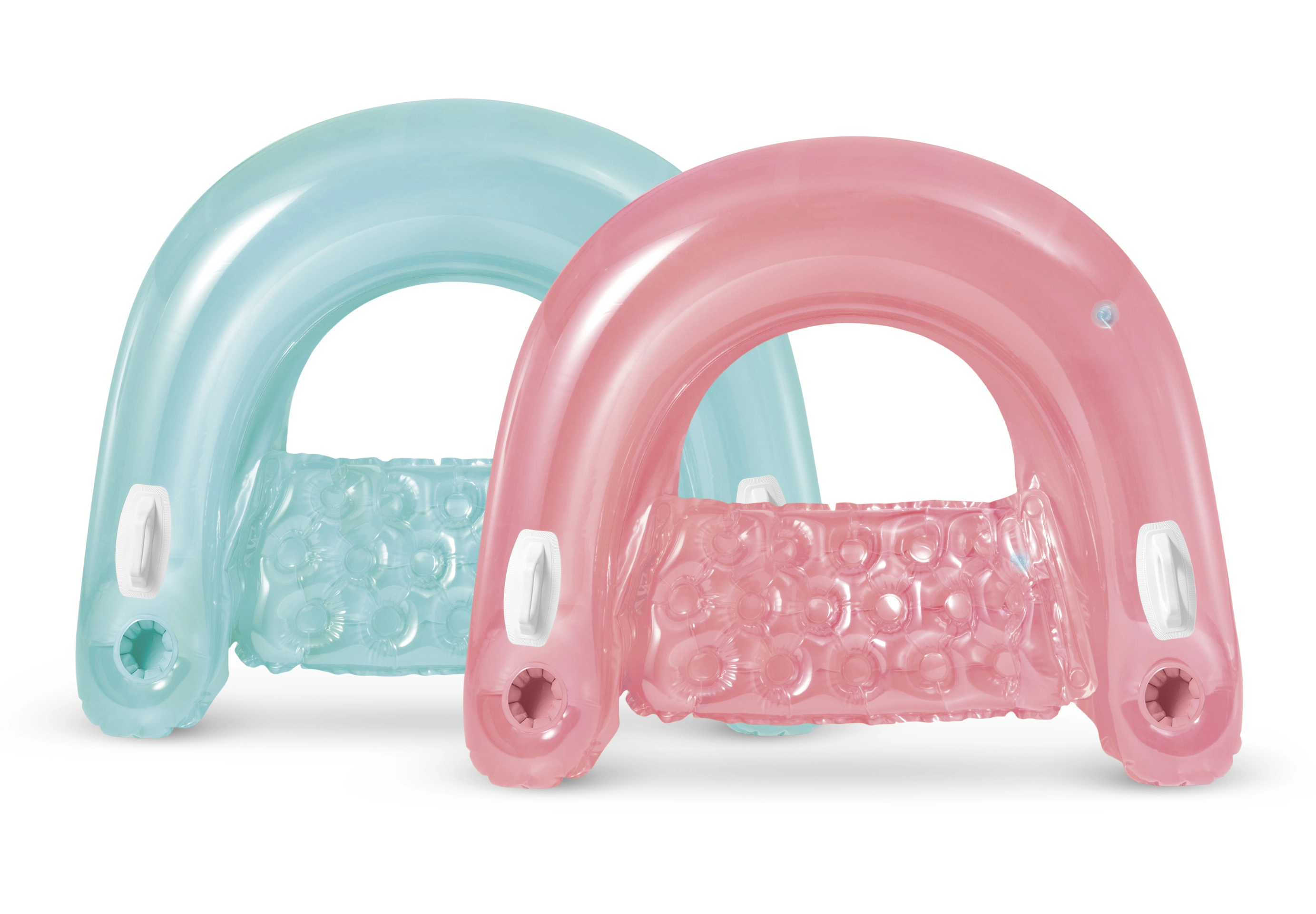 El elegante asiento inflable con forma de herradura es ideal para relajarse en la superficie del agua. Gracias a su material robusto y a su diseño bien pensado, ofrece estabilidad, comodidad y mucha diversión para niños y adultos.
