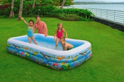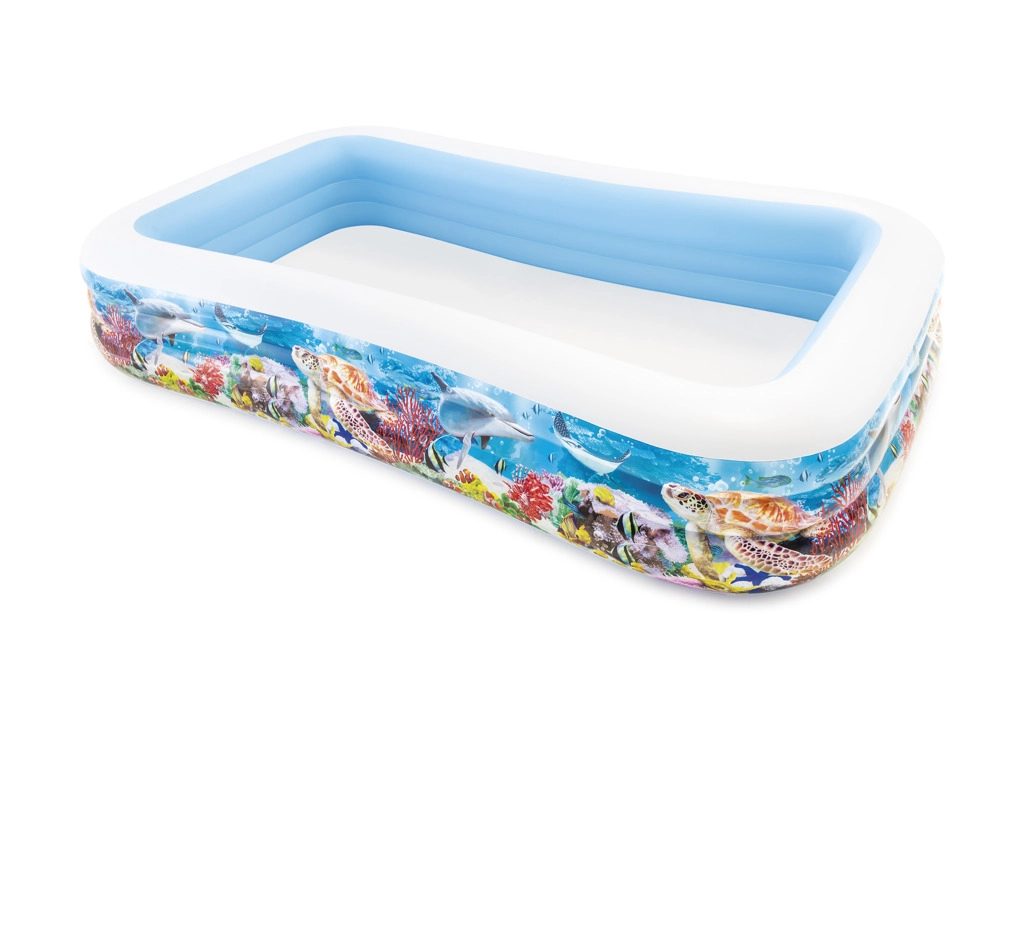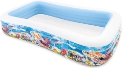 Disfruta del verano al máximo con la espaciosa piscina inflable INTEX de estilo mundo marino. Sus dimensiones de 305 × 183 × 56 cm ofrecen espacio suficiente para niños y adultos. Tres cámaras de aire independientes para un inflado y desinflado rápidos, vinilo de alta calidad resistente y un kit de reparación incluido la convierten en una excelente opción para la diversión en el jardín.