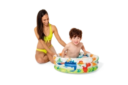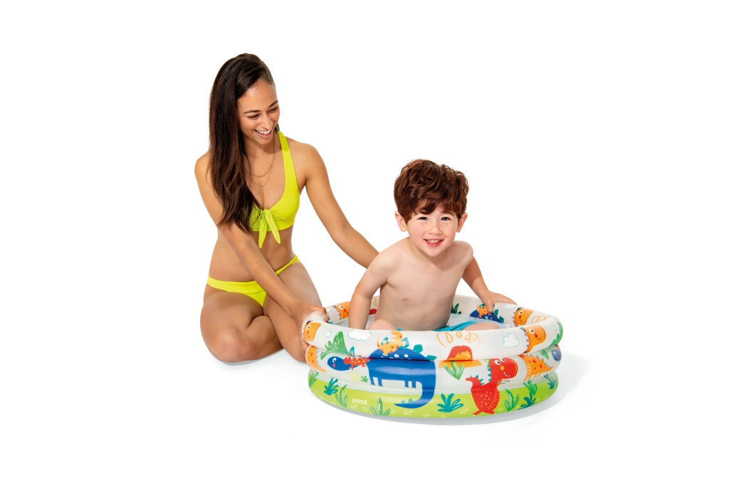 La piscina inflable Intex con adorables dinosaurios es ideal para las primeras diversiones acuáticas de niños de 1 a 3 años. Gracias a su diámetro de 61 cm y altura de 22 cm, cabe casi en cualquier lugar y proporciona una zona segura y poco profunda para jugar y refrescarse en los días calurosos.