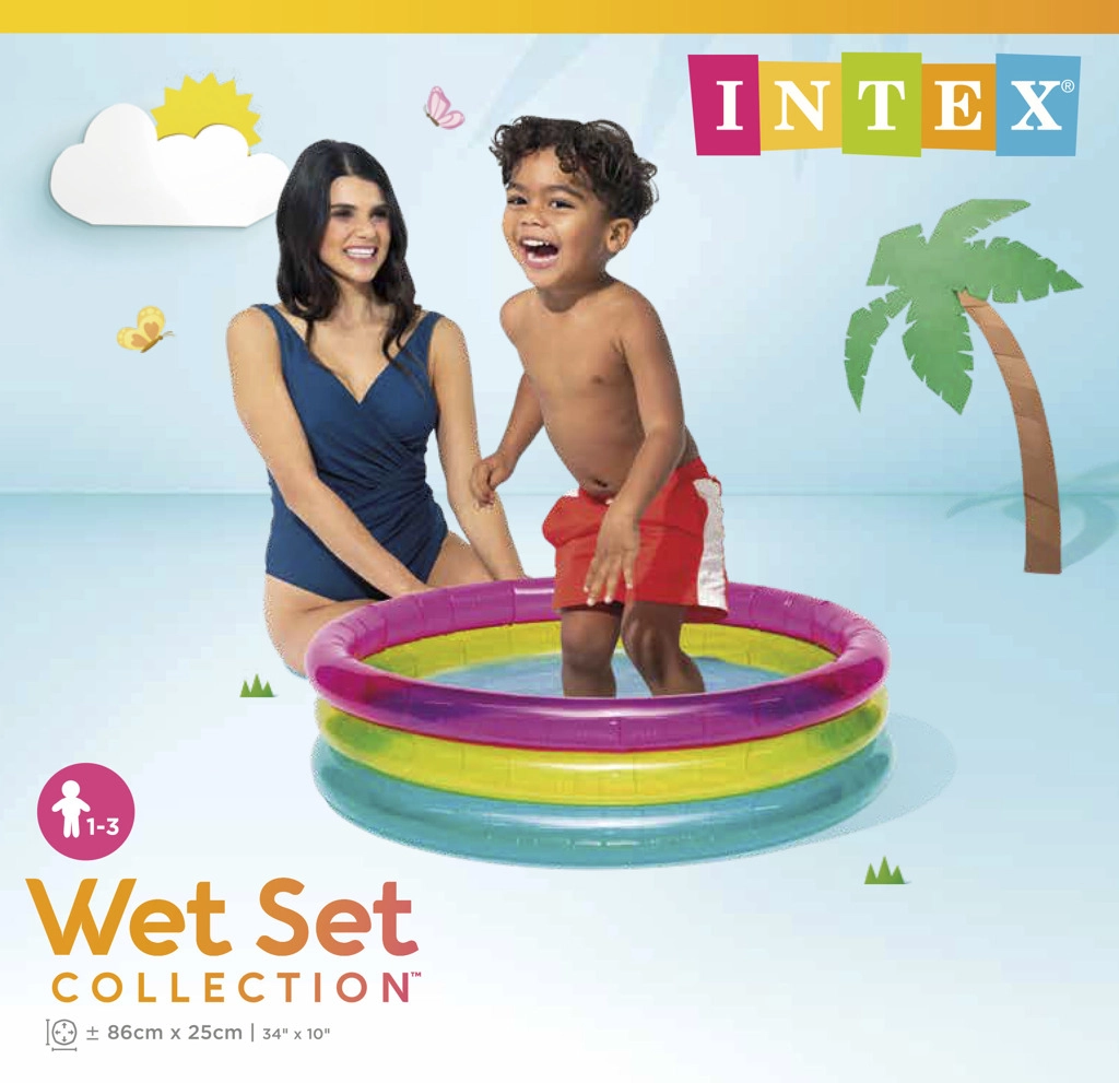 La piscina infantil inflable INTEX Rainbow es colorida y práctica para los días de verano. Gracias a sus tres anillos transparentes, es estable y cómoda, mientras que sus dimensiones compactas de 86 × 25 cm encajan en la mayoría de jardines, terrazas y balcones. La capacidad de 68 litros con una altura de agua recomendada de 17 cm garantiza una superficie poco profunda y segura para los más pequeños.