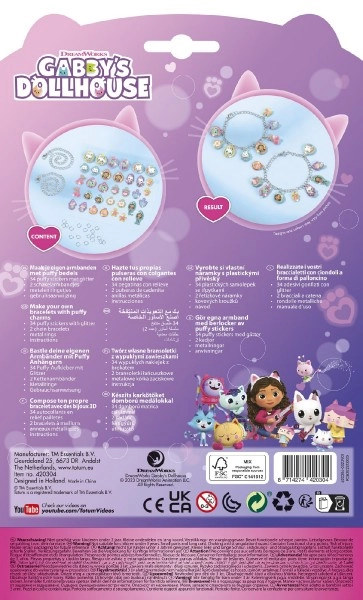 Este set creativo es ideal para pequeños artistas y fans de Gabby y su casa de muñecas. Los niños pueden elaborar pulseras queridas hechas a mano con colgantes que conservarán como recuerdo.