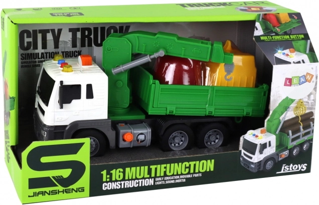 Este camión de basura infantil con grúa de color verde ofrece mucha acción y aprendizaje. Gracias a la tracción por fricción, basta con tirar del camión hacia atrás y soltarlo: avanza por sí mismo. Los efectos de sonido (claxon, arranque del motor, marcha atrás) intensifican la experiencia realista y estimulan la imaginación.