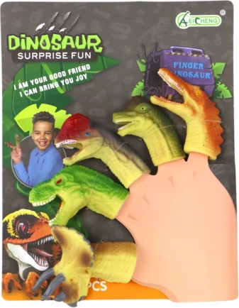 - 5 dinosaurios de goma para los dedos (varias especies)