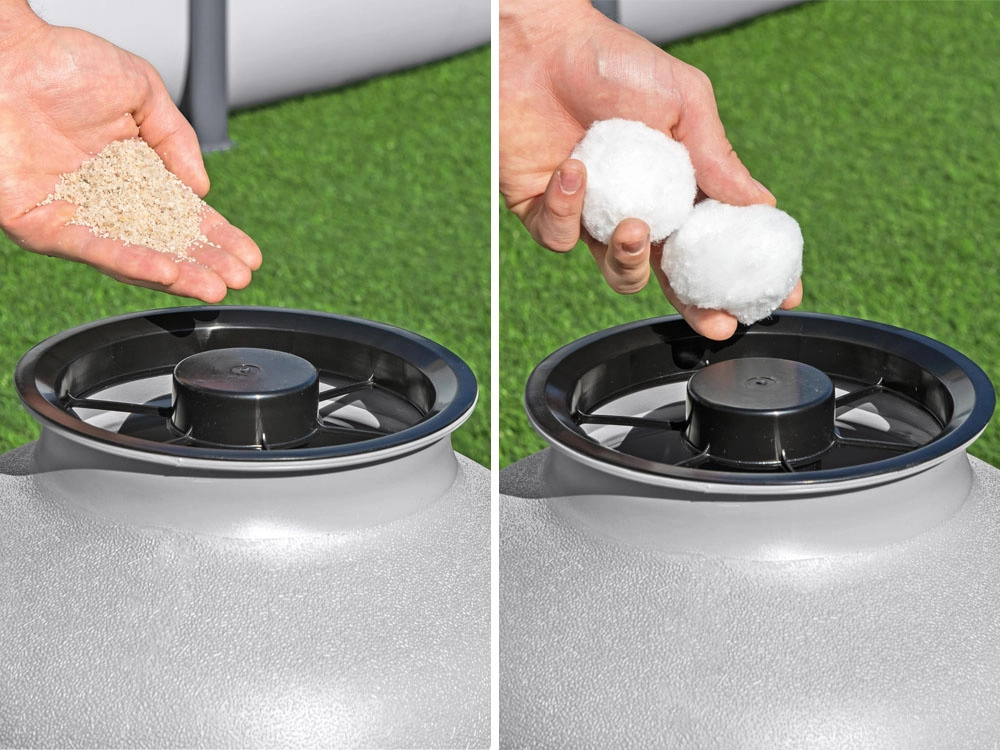 Elige entre arena de sílice de 0,45–0,85 mm y bolas filtrantes para mayor eficacia y manipulación más sencilla.