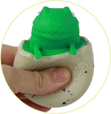 El huevo contiene un dinosaurio que aparece al apretarlo. Perfecto para el juego interactivo.
