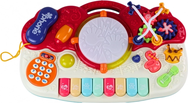Incluye teclado, tambor, teléfono integrado y diversas funciones de sonido y luz para fomentar la conciencia musical de los niños.
