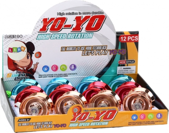 Elegante yo-yo de aluminio para principiantes y avanzados que ofrece estructura duradera, rotación rápida y equilibrio estable. Gracias a su superficie lisa y a un rodamiento de calidad, realiza trucos con facilidad y resiste un uso prolongado. Ideal para desarrollar la coordinación, la motricidad fina y la concentración. Disponible en tres colores: rojo, dorado y azul.