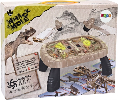 Este juego interactivo convierte cualquier habitación en una aventura de la era de los dinosaurios. El objetivo es reaccionar rápido y golpear con el mazo las figuras iluminadas. Gracias a los efectos de luz y sonido, el juego es emocionante, desarrolla la atención, los reflejos y la coordinación y divierte tanto a niños como a adultos.
