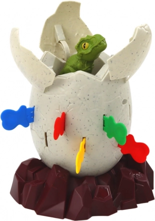 El dinosaurio saltarín no es solo un juguete común: es una experiencia que aporta momentos inesperados llenos de alegría y sorpresa para toda la familia. Coloca el huevo de dinosaurio sobre la base marrón e introduce las figuritas del dinosaurio dentro. Luego inserta las varillas de plástico alrededor del huevo. El juego parece sencillo, pero cuando colocas la varilla en el lugar correcto, ¡el dinosaurio salta de repente del huevo! Esto trae diversión y risas para todos los jugadores.