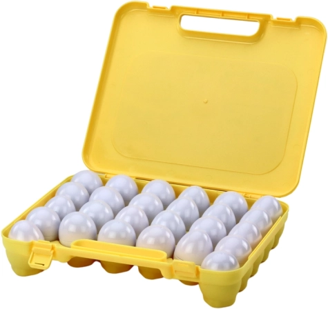 El maletín amarillo permite transportar los huevos fácilmente y los protege de daños. Gracias a esta característica, el juguete es ideal para viajar.