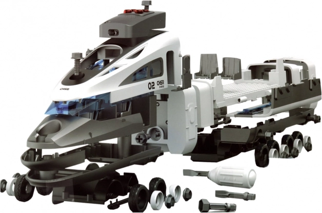 El trenecito, con un diseño realista inspirado en los trenes de alta velocidad HYPERLOOP, introduce a los niños en el mundo ferroviario. Las piezas se pueden atornillar y volver a montar fácilmente con el destornillador incluido con puntas intercambiables, ideal para desarrollar la motricidad fina, la concentración y el pensamiento técnico.