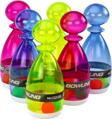 ¡Un juego familiar divertido para interior y exterior! Este set incluye 6 bolos transparentes de colores (2 morados, 2 azules, 2 amarillos) y una bola ergonómica para derribos precisos. El material resistente con diseño transparente permite ver las bolitas en el interior para un efecto aún mayor. Certificación CE, cumple la norma EN71, apto para niños a partir de 3 años.