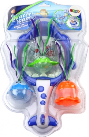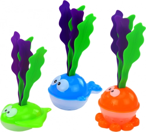 Tres pececitos de colores con juguetonas “algas” flotan en la superficie e invitan a atraparlos: ideal para entrenar la coordinación y la paciencia.