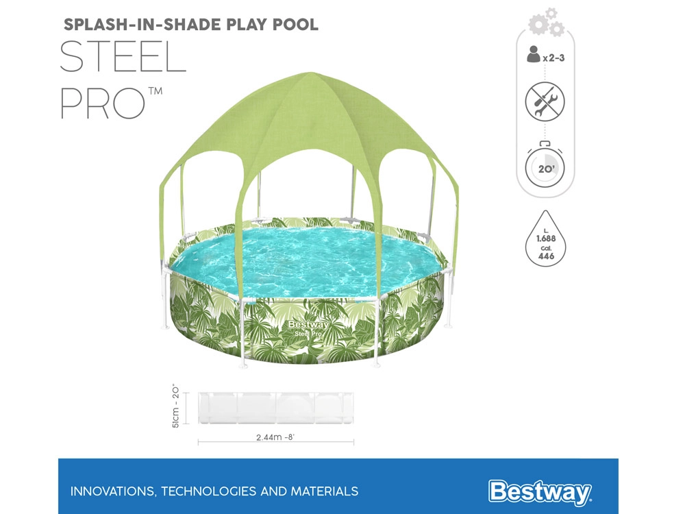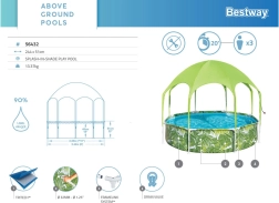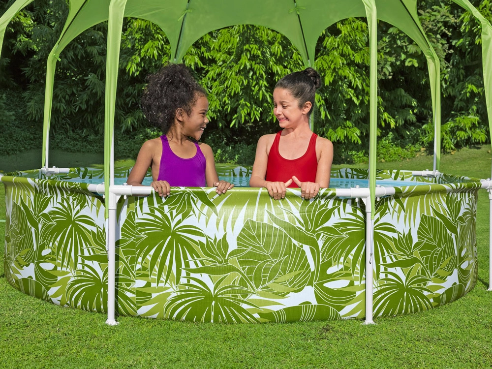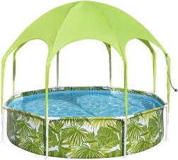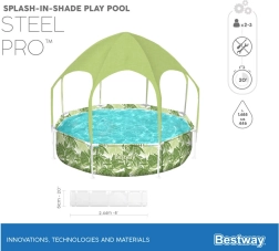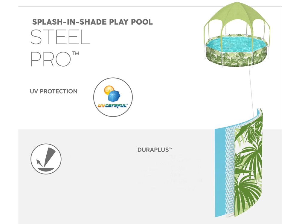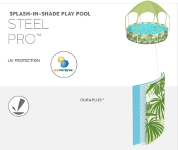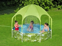 La piscina Bestway SPLASH-IN-SHADE está diseñada para motivar a los niños al movimiento y a un juego acuático seguro en el jardín. El toldo con rociador integrado proporciona sombra y refrigeración; basta con conectar una manguera de jardín y la diversión puede comenzar. Los coloridos gráficos veraniegos encantarán a los pequeños nadadores y la robusta construcción garantizará estabilidad durante todo el verano.