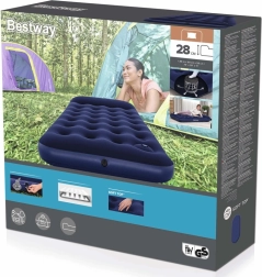 El colchón inflable individual BESTWAY ofrece un descanso cómodo en casa y de viaje. Gracias a su resistente estructura coil-beam, la bomba de pie integrada y la almohada incorporada, se infla fácilmente y proporciona un soporte estable y confortable. La superficie superior de vinilo aterciopelado aumenta la comodidad, mientras que la válvula de doble sentido permite un inflado y desinflado rápidos.