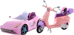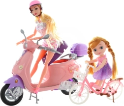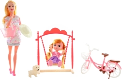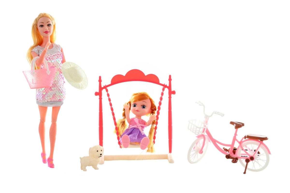 Descubre un gran set de muñecas con accesorios que ofrece horas de diversión creativa. Incluye una muñeca articulada de 30 cm, una muñeca más pequeña de 16 cm, un coche rosa de 33 cm, un scooter de 30 cm, una bicicleta de 17 cm, un columpio, un perrito y accesorios con estilo como sombrero, casco y bolsa. Fabricación en plástico de calidad, presentado en caja de regalo. Edad 3+.