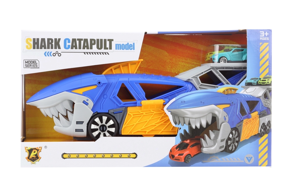 Una divertida pista con temática de tiburón convierte cada tarde en una carrera llena de acción. El gran coche con forma de tiburón funciona como lanzador y, gracias a su mecanismo de goma elástica, impulsa los cochecitos incluidos hacia adelante. El paquete contiene el coche grande y 2 cochecitos, está hecho de plástico resistente y es apto para niños a partir de 3 años.