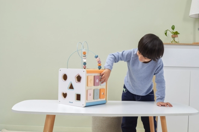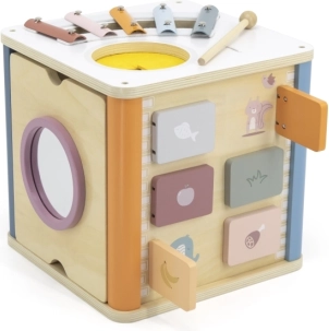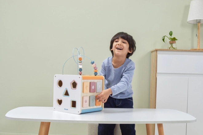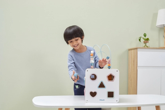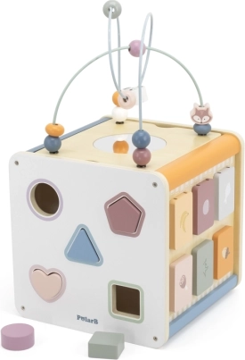 Viga PolarB Cubo educativo 8 en 1 ofrece ocho actividades diferentes que atienden diversos aspectos del desarrollo infantil. El juguete incluye: