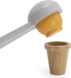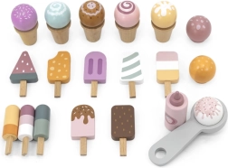 El puesto incluye varios tipos de helados de madera que permiten a los niños crear sus propias combinaciones de helado.