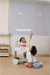 Móvil con estructura de dos ruedas, este puesto es ideal para jugar tanto en interiores como en exteriores, y anima a los niños al juego de roles y a la interacción social.