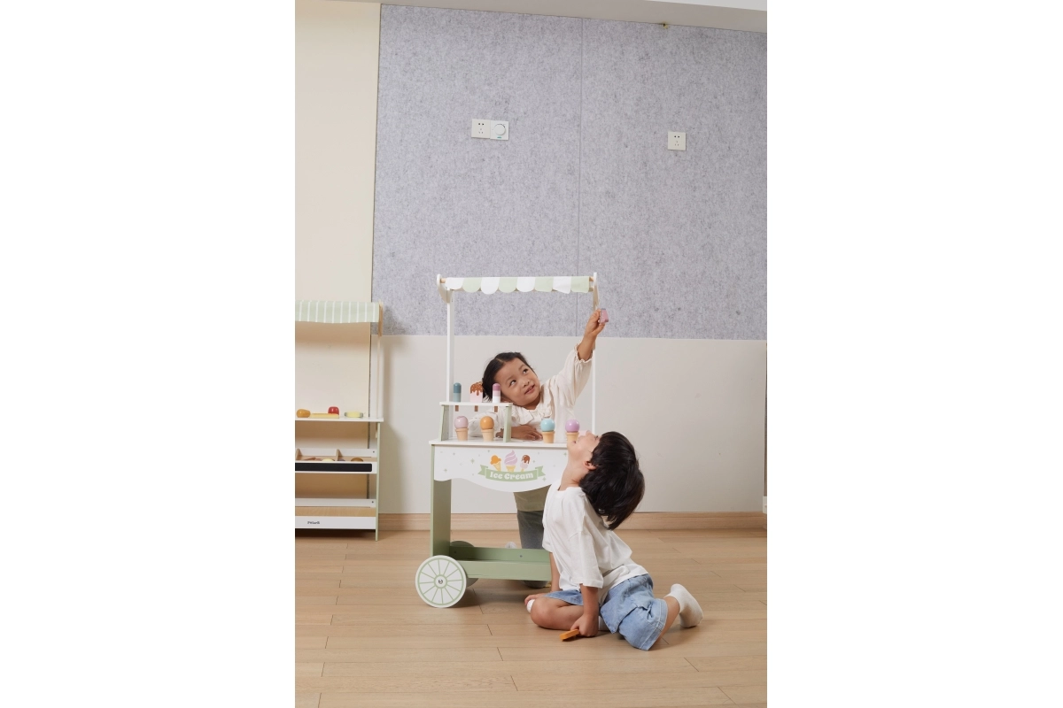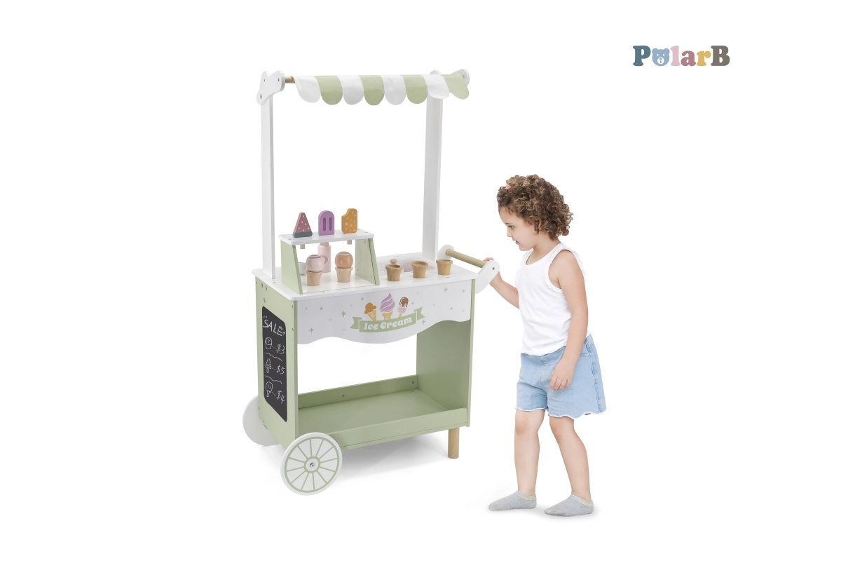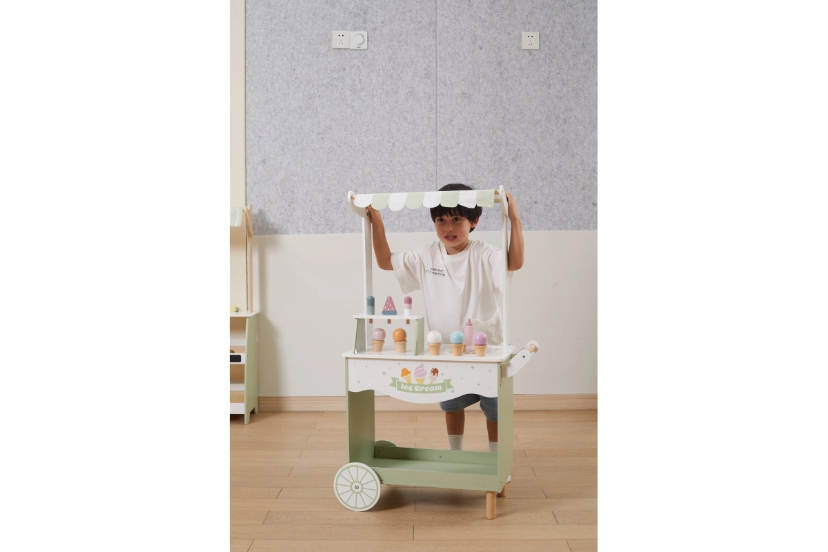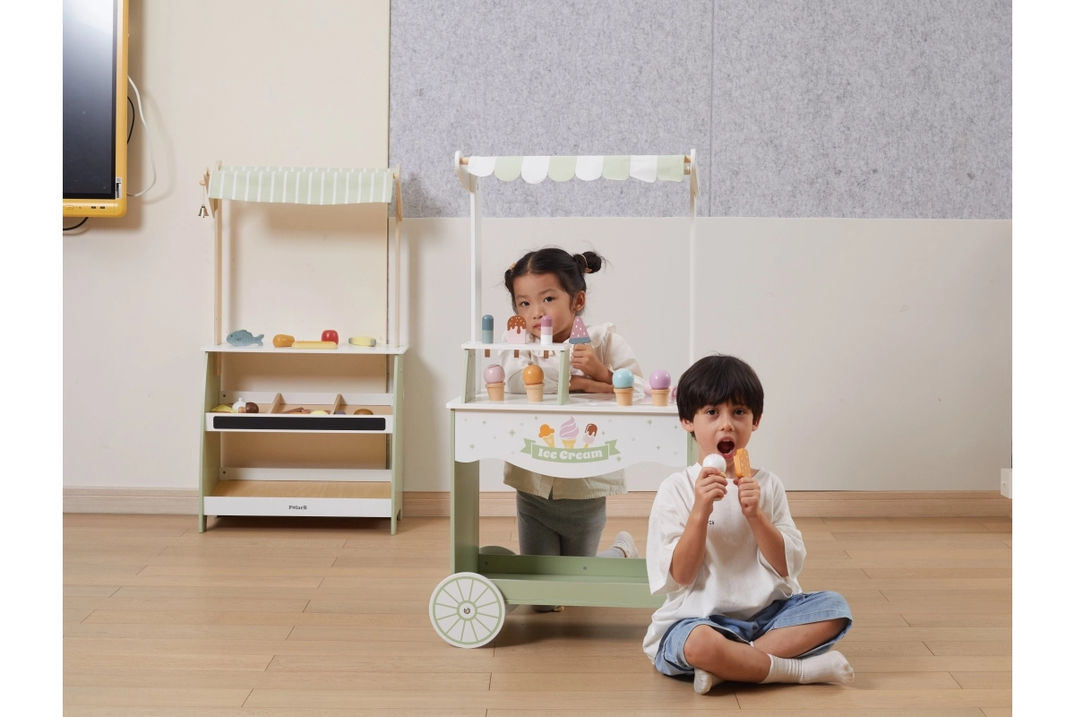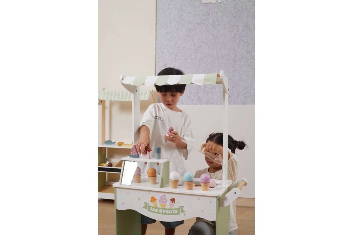 Emprende un viaje lleno de fantasía con nuestro puesto de helados de madera para niños. Este colorido puesto incluye una amplia variedad de helados de madera y accesorios que entretendrán a los niños durante horas: