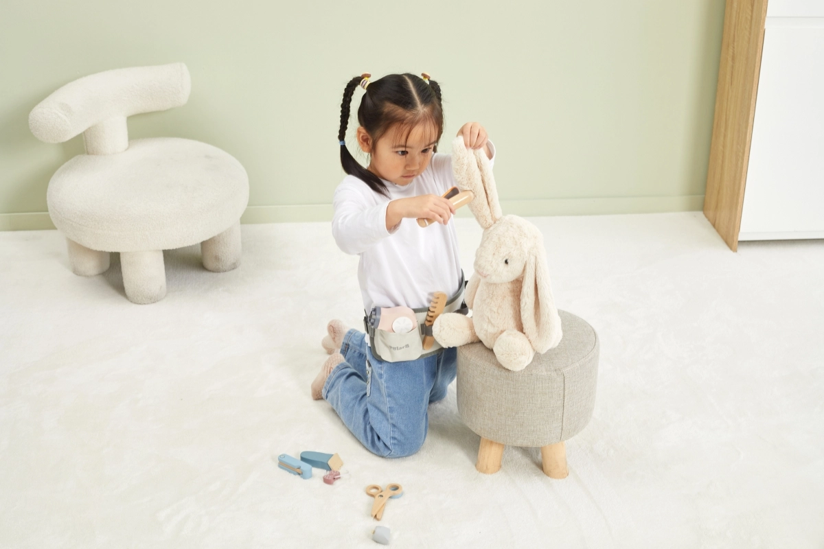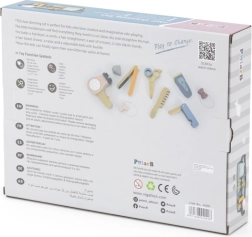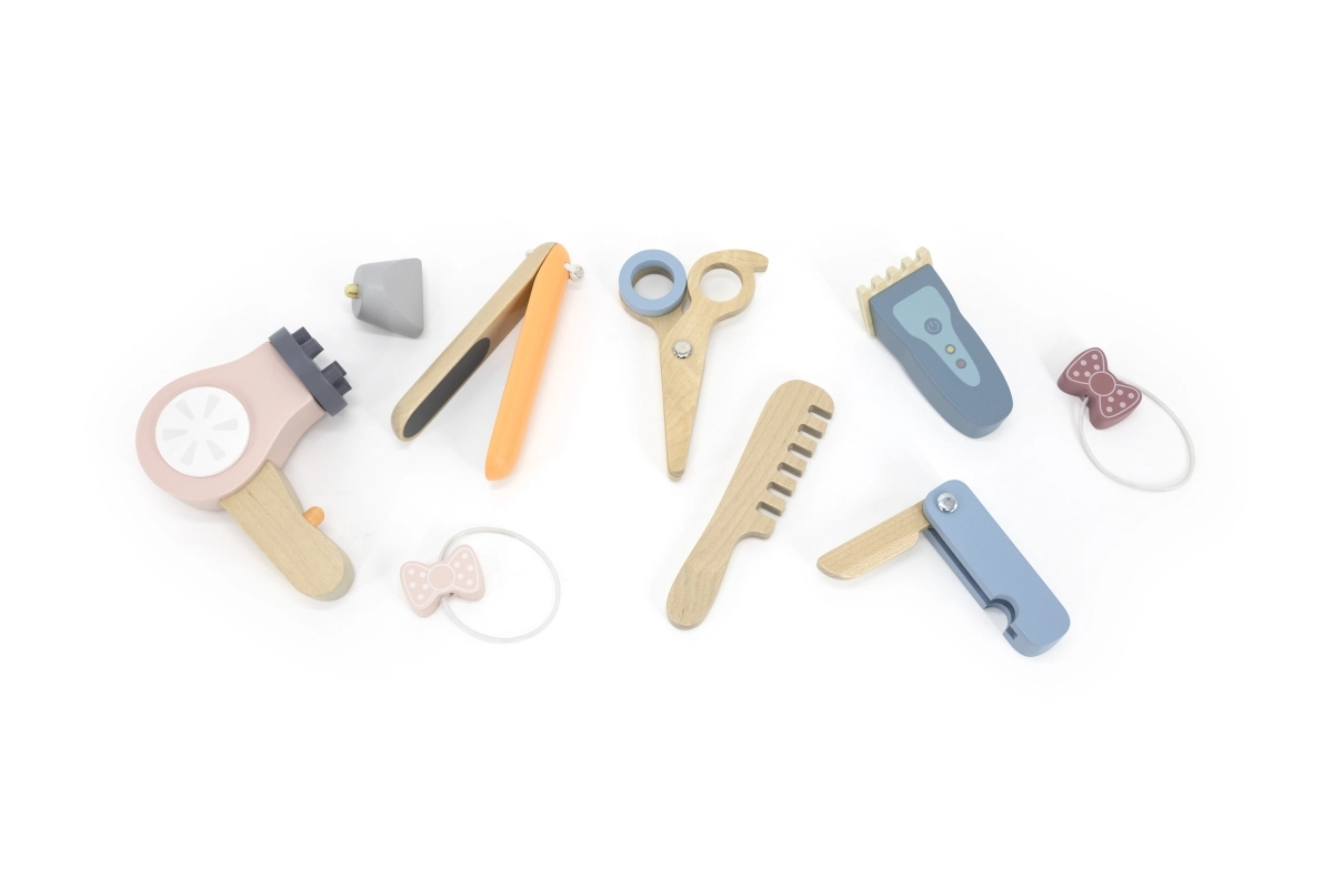 Gracias a las diferentes herramientas de madera como tijeras, peine y secador, este set ofrece todo lo necesario para un juego de roles creativo como peluquero.