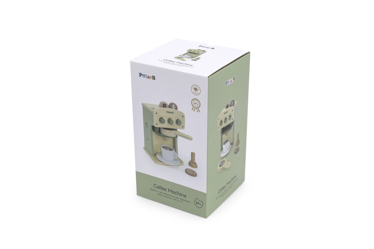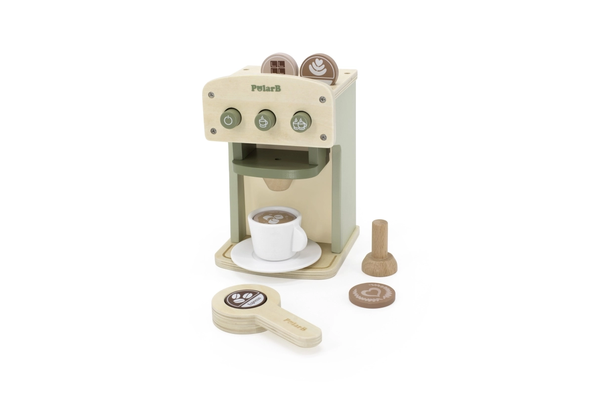 Cafetera de madera del reconocido fabricante de juguetes infantiles Viga. Esta cafetera es ideal para cocinitas infantiles y permite desarrollar habilidades culinarias de forma divertida.