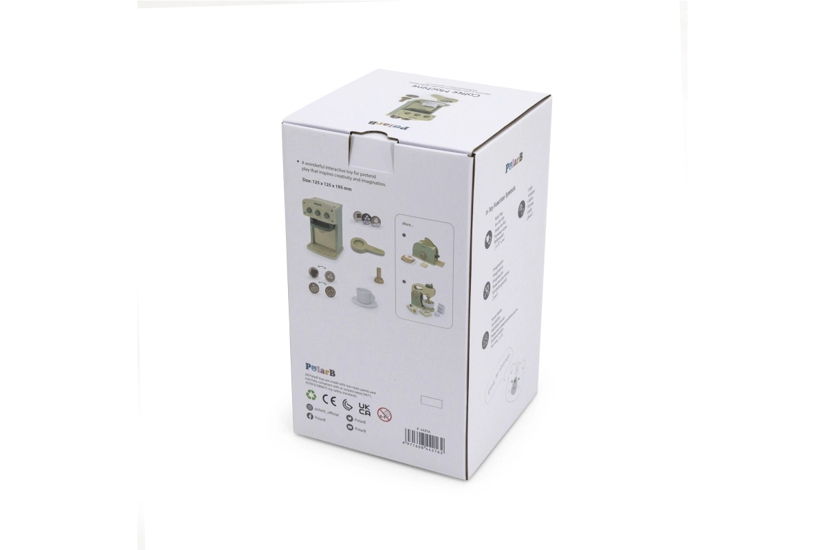 Los niños estarán encantados de poder preparar café para los invitados por sí mismos. Igual que en una cafetera de verdad, se introduce una cucharita con café. Pulsa el botón para iniciar el proceso de preparación del café.