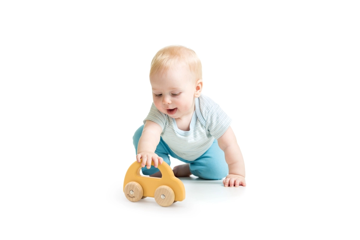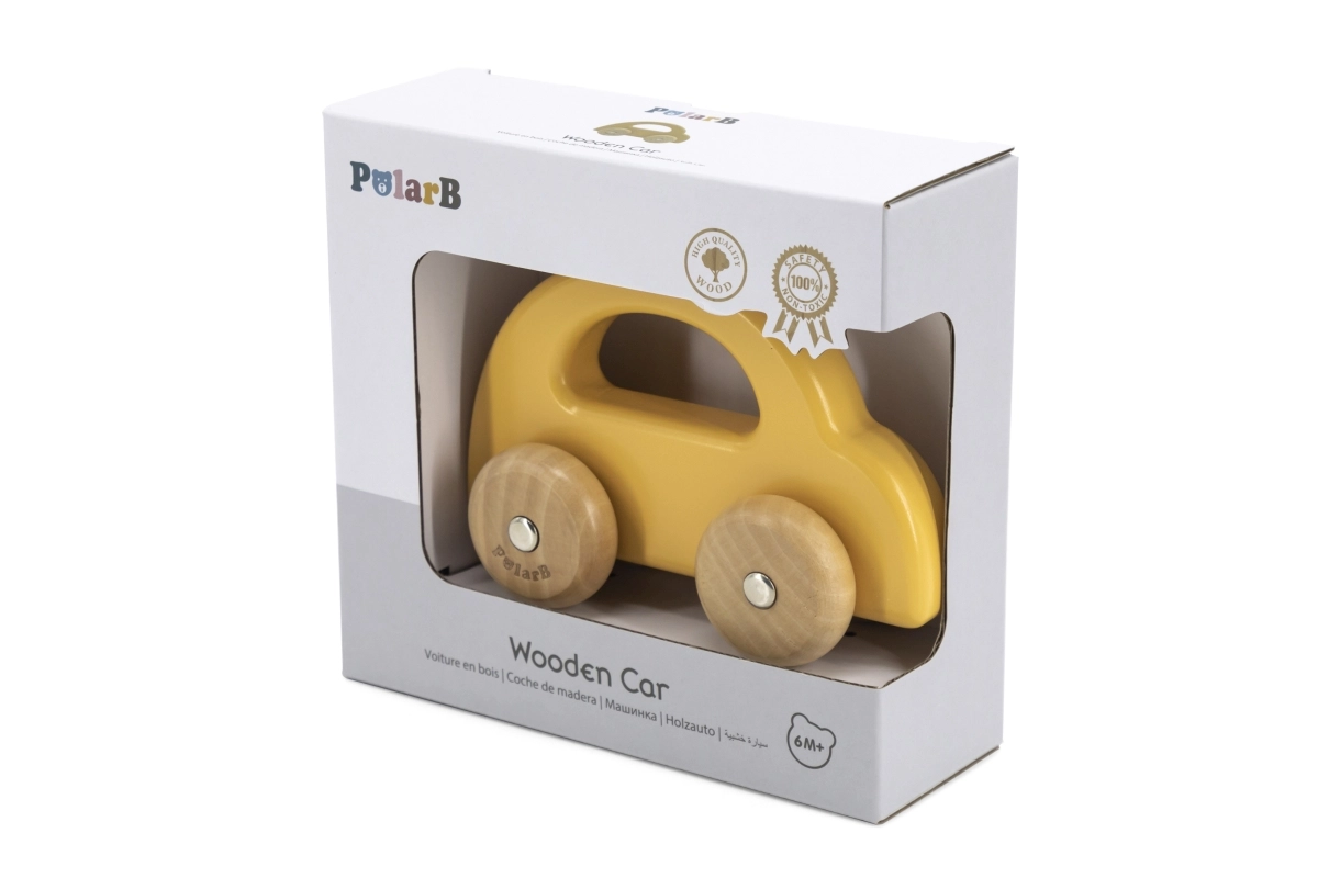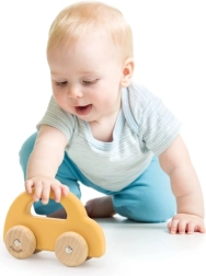 El coche de madera para empujar es un juguete ideal para niños a partir de 6 meses. Destaca por su construcción sencilla y en tonos pastel sin bordes afilados, lo que garantiza la máxima seguridad para los más pequeños. El coche está equipado con ruedas silenciosas y de movimiento fluido.