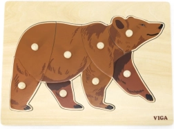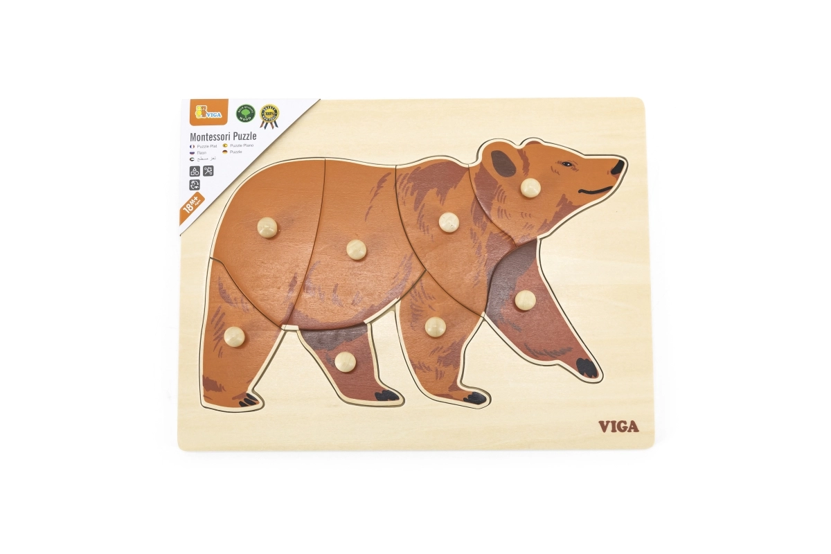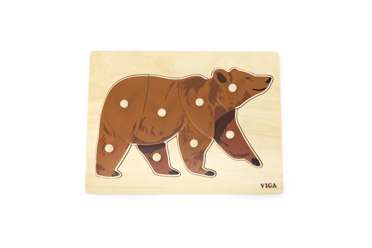 Este juguete sensorial y educativo inspirado en el método Montessori guía a los niños a descubrir las formas y completar la imagen de un oso. Las grandes clavijas de madera facilitan la manipulación, de modo que los niños aprenden a insertar las piezas con precisión mientras fortalecen la motricidad fina.