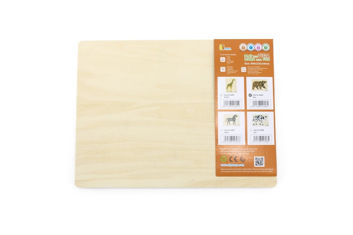 La base resistente de madera natural con bordes lisos e impresión de calidad garantiza un juego seguro y duradero.