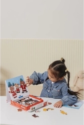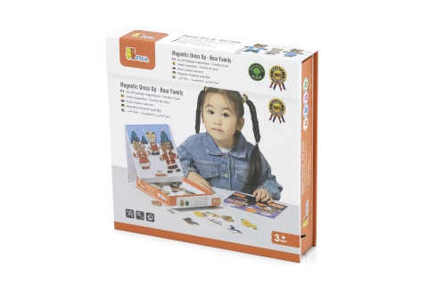 Este creativo set ofrece el popular juego de vestir magnético de madera con el motivo de una familia de osos. Los niños pueden crear distintos atuendos y expresiones, probar profesiones y situaciones cotidianas y elaborar sus propias historias. 54 piezas magnéticas brindan muchas combinaciones para largas horas de diversión.