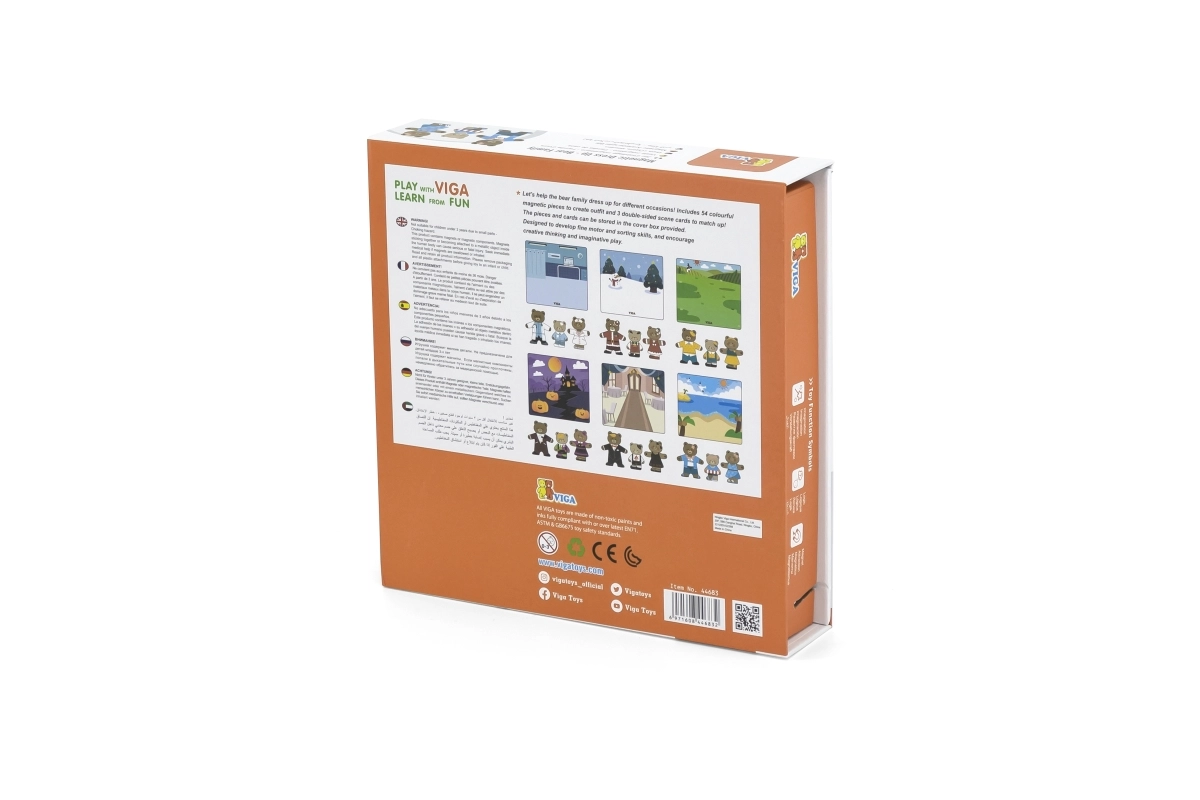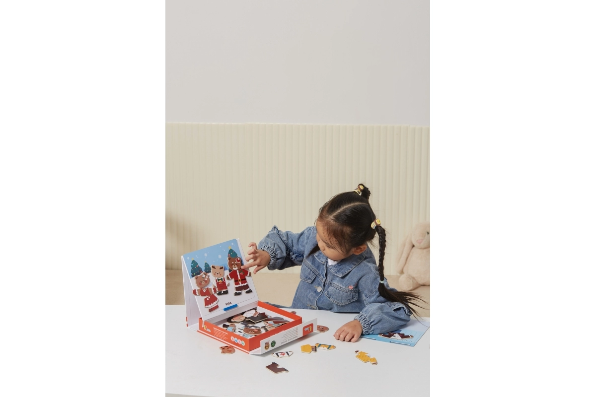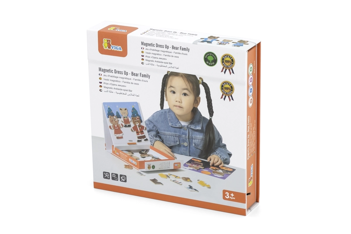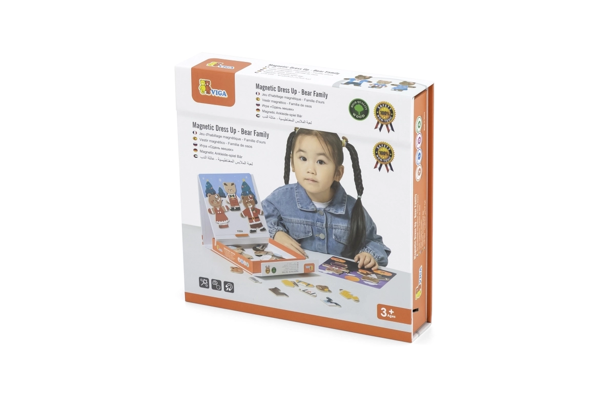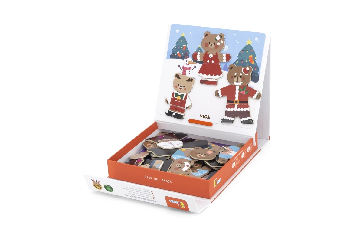Descubre un divertido set para pequeños creadores: juego de vestir magnético de madera Viga – familia de osos con 54 piezas. Los niños a partir de 3 años ejercitan la motricidad fina, la coordinación mano-ojo y la imaginación al combinar prendas y expresiones. El paquete compacto de 21,5 × 21,5 × 4,5 cm se transporta y guarda fácilmente.