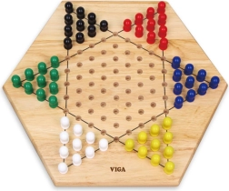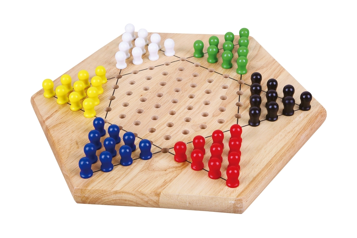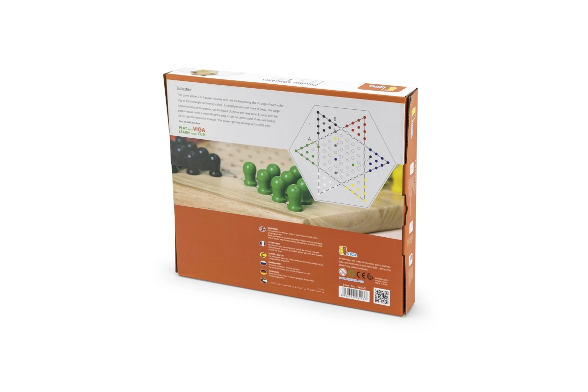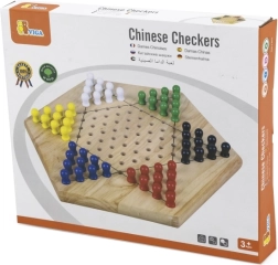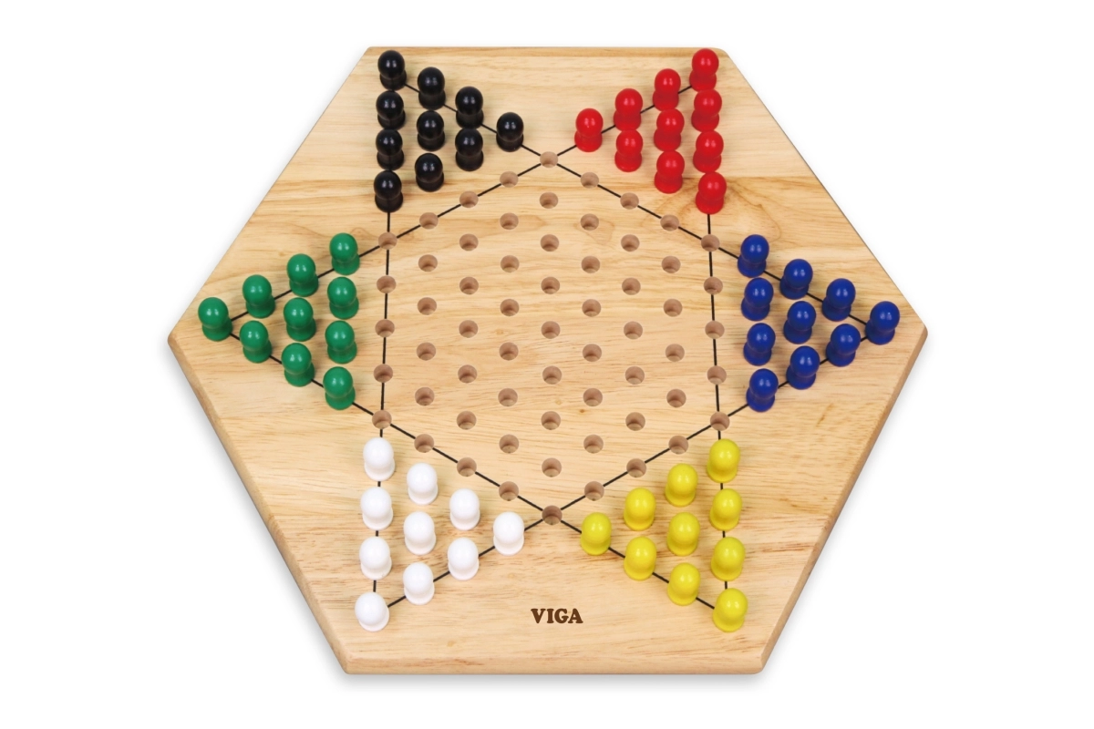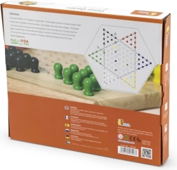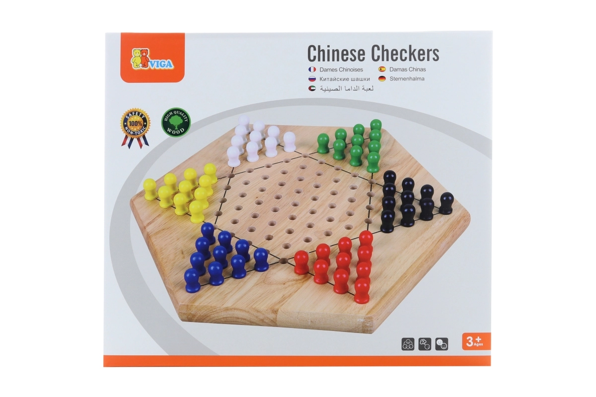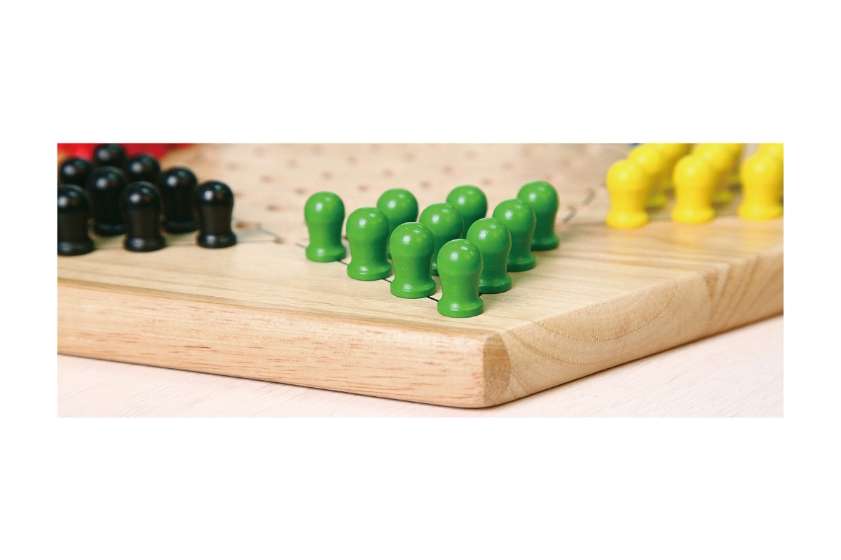 Las Damas Chinas son una variante popular del juego halma, cuyo objetivo es mover todas tus piezas hasta el vértice opuesto de la estrella. El tablero de madera con orificios regulares y las clavijas de colores garantizan una experiencia de juego cómoda y clara para niños y adultos.
