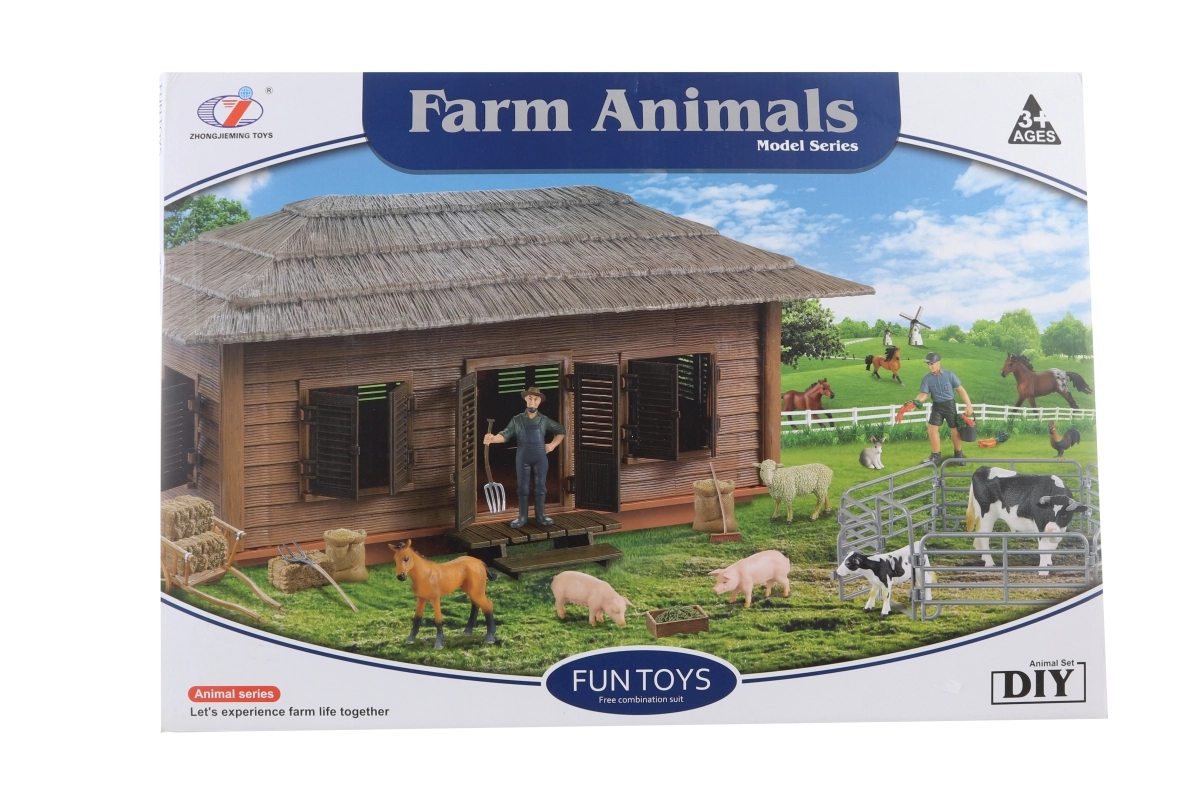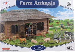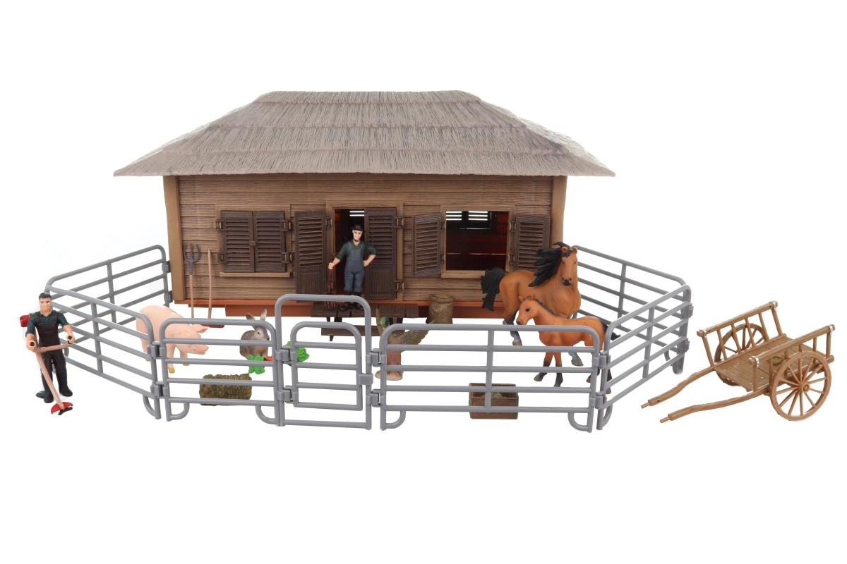 El establo, el corral, dos granjeros y cinco animales favoritos forman la base para escenas realistas de la granja.