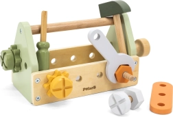 Esta elegante caja de herramientas de madera en los suaves tonos de la colección POLARB ofrece a los niños una forma segura y divertida de descubrir el mundo de las herramientas. Las piezas son agradables al tacto, sin bordes afilados y pintadas con colores seguros aptos para niños.