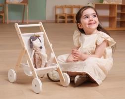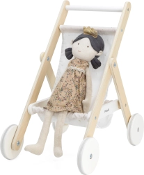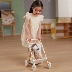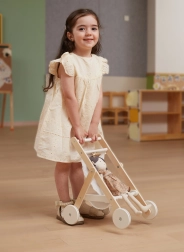 Brinda a los niños un juego realista de papás y mamás con este elegante carrito de madera para muñecas. Combina un diseño atemporal, materiales de calidad y un acabado seguro para que cada “paseo” con la muñeca sea cómodo y silencioso. Los neumáticos de goma en las ruedas reducen el ruido en el suelo y mejoran la estabilidad durante los primeros pasos.