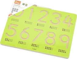 Este tablero de madera de alta calidad con números fresados del 0–9 es una herramienta ideal para los primeros pasos hacia la escritura. Con el lápiz de madera, el niño sigue las ranuras curvadas con flechas direccionales, consolidando la forma correcta de los números, el ritmo y las huellas de memoria para una transición más fluida al lápiz.