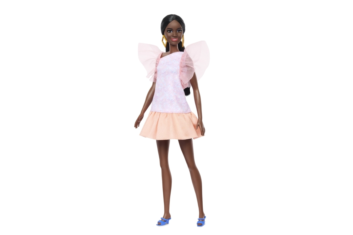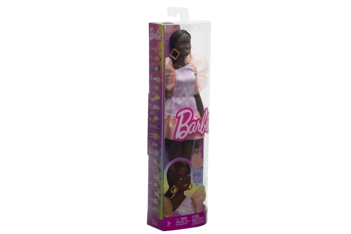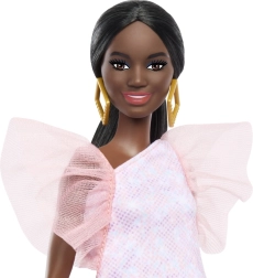 La elegante muñeca BARBIE Modelo con vestido rosa y mangas abullonadas ofrece infinitas posibilidades de juego creativo. Gracias a su conjunto moderno, llamativos pendientes dorados y zapatos azules, es ideal para estilismo de moda, contar historias y desarrollar la imaginación infantil. La muñeca forma parte de una colección que celebra la diversidad de tonos de piel, cabellos y estilos. Apta para niños a partir de 3 años.