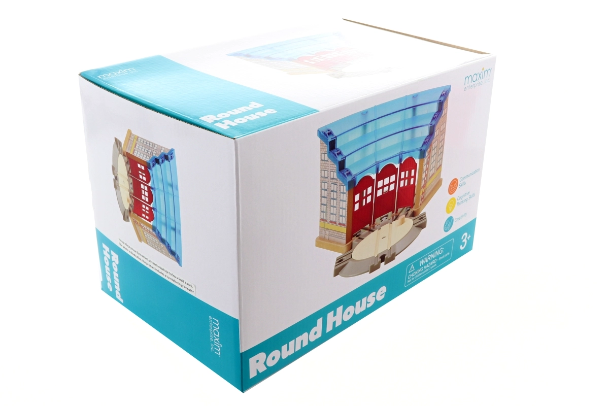 Descubra el gran depósito con placa giratoria de la marca MAXIM, que ofrece espacio para tres locomotoras o vagones. Gracias al techo de dos niveles obtendrá un excelente acceso para el mantenimiento y la limpieza, mientras que la placa giratoria integrada facilita el acoplamiento y el giro. Compatible con todas las vías de tren de madera comunes y apto para niños a partir de 3 años.