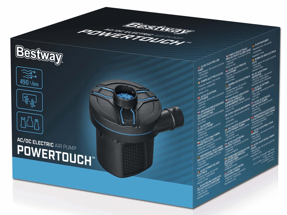 La bomba eléctrica Bestway es un dispositivo multifuncional que no solo infla, sino que también desinfla, lo cual resulta útil al guardar los artículos inflables. Gracias a su tamaño compacto y bajo peso, es fácil de transportar e ideal para viajar. Dispone de tres boquillas universales compatibles con la mayoría de las válvulas.